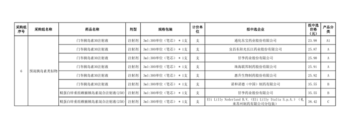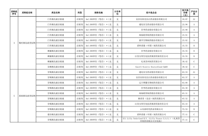 附件:全國(guó)藥品集中采購(gòu)(胰島素專項(xiàng)接續(xù))擬中選結(jié)果表