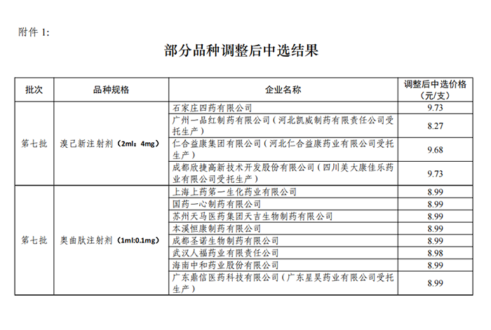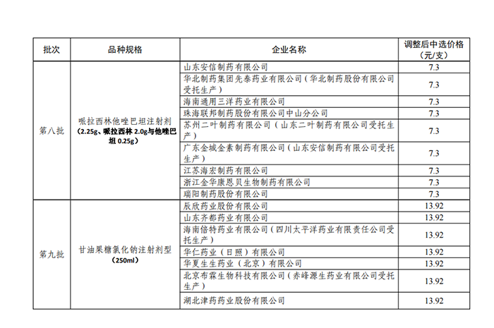 近日,我辦收到國家組織藥品集中采購部分中選企業(yè)自主降價(jià)承諾函,涉及溴己新注射劑、奧曲肽注射劑、哌拉西林他唑巴坦注射劑、甘油果糖氯化鈉注射劑型4個(gè)品種。按照《全國藥品集中采購文件》有關(guān)規(guī)定,現(xiàn)對(duì)上述4個(gè)品種的中選價(jià)格予以調(diào)整,請(qǐng)國家組織藥品聯(lián)合采購辦公室各成員單位于2024年5月1日起執(zhí)行新的中選價(jià)格。